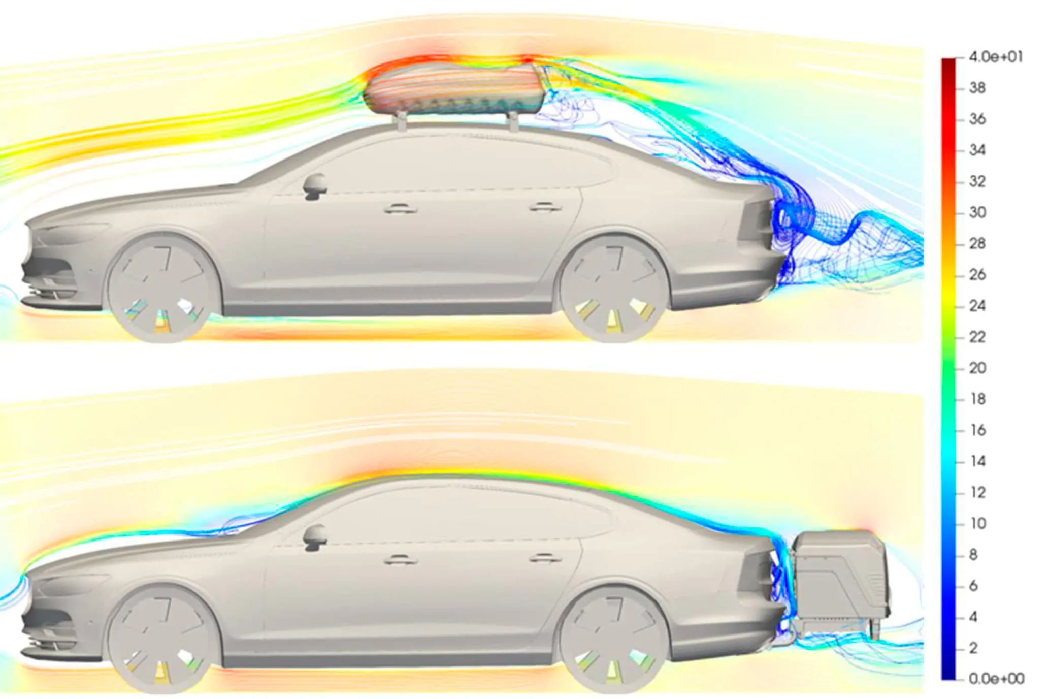 Uit onderzoek van CIRCE (Research Centre for Energy Resources and Consumption) is het verbruikt van brandstof / elektriciteit bij een auto met een trekhaakkoffer tot 30% lager dan bij een auto met een dakkoffer.